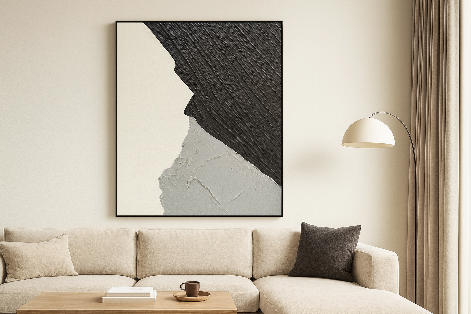 The collection includes several formats designed to match different wall sizes. Large artworks create strong visual accents and support the room’s overall flow through textured surfaces and soft lines. Sets with two posters form smooth, balanced compositions. Each size enhances the natural depth and complements the interior’s overall character.